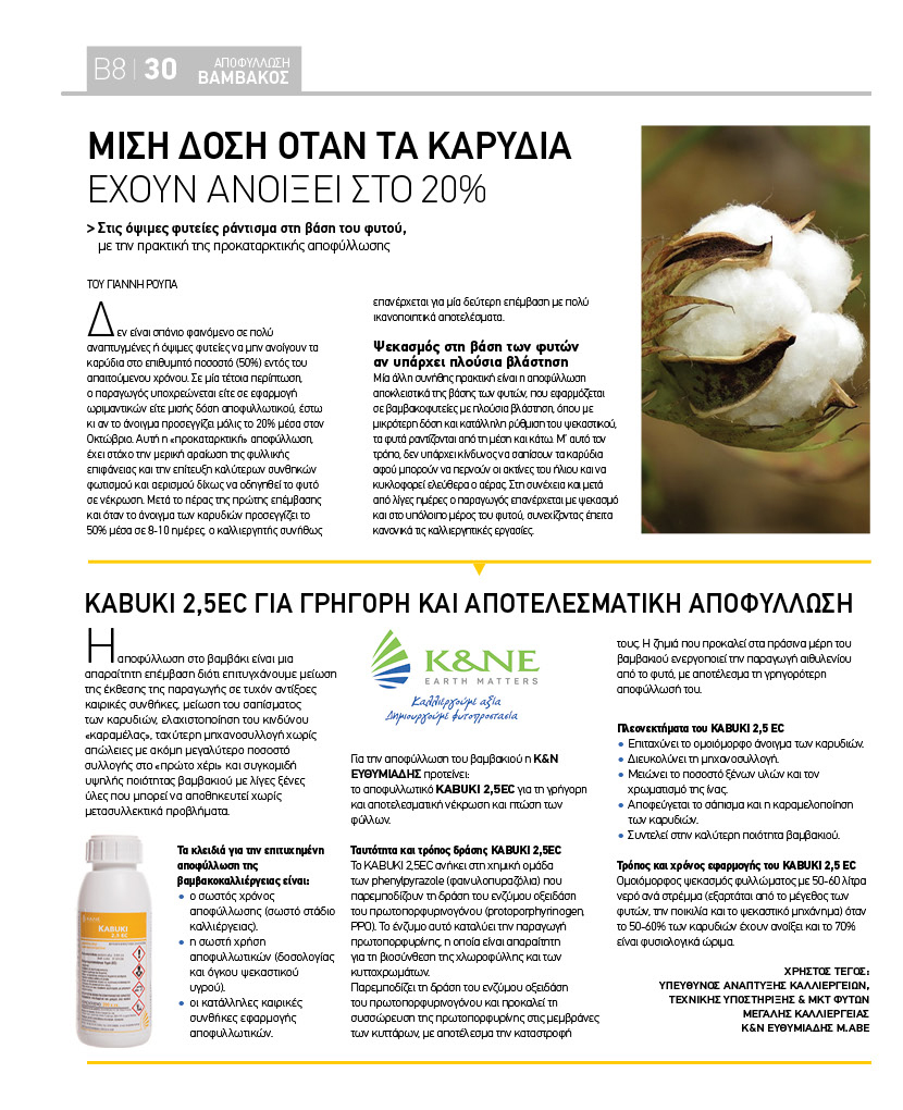 το αποφυλλωτικό KABUKI 2,5EC για τη γρήγορη και αποτελεσµατική νέκρωση και πτώση των φύλλων.