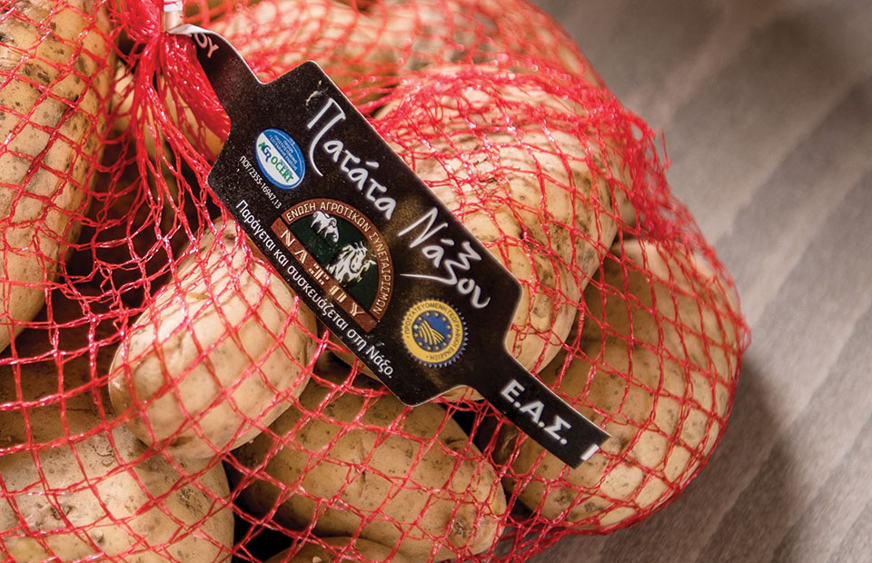 Αποτελεί ένα από τα πιο χαρακτηριστικά αγροτικά προϊόντα της Ελλάδας, βασικό πυλώνα της τοπικής οικονοµίας και της αγροτικής παραγωγής του νησιού της Νάξου, ενώ έχει αναδειχθεί και ως µία από τις καλύτερες πατάτες στον κόσµο. Η ιδιαίτερότητα της Προστατευόµενης Γεωγραφικής Ένδειξης (ΠΓΕ) Πατάτας Νάξου, που διατίθεται και σε µεγάλες αλυσίδες super markets, είναι αποτέλεσµα του συνδυασµού των ιδιαίτερων εδαφικών και κλιµατικών χαρακτηριστικών του νησιού µε τις τοπικά προσαρµοσµένες καλλιεργητικές πρακτικές. H διαφοροποίηση µάλιστα αυτή τεκµηριώνεται µε αναφορές που ξεκινούν από το πρώτο µισό του 19ου αιώνα, την εποχή που πρωτοεισήχθη στην Ελλάδα το φυτό. Να σηµειωθεί ότι η ΕΑΣ Νάξου συσκευάζει την πατάτα, συχνά σε συσκευασίες 3 κιλών, για να φτάνει αυθεντική στον καταναλωτή, αντιµετωπίζοντας παράλληλα φαινόµενα αποµιµήσεων.