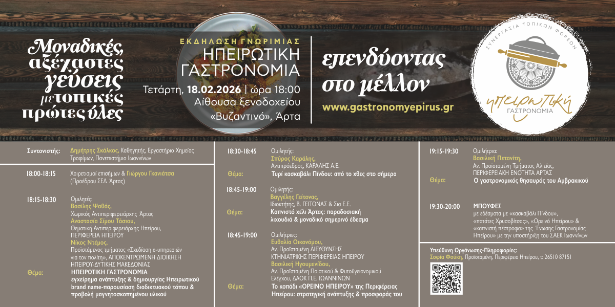 Θέμα: ΗΠΕΙΡΩΤΙΚΗ ΓΑΣΤΡΟΝΟΜΙΑ εγχείρημα ανάπτυξης και δημιουργίας Ηπειρωτικού brand name – παρουσίαση δικτυακού τόπου & προβολή μαγνητοσκοπημένου υλικού