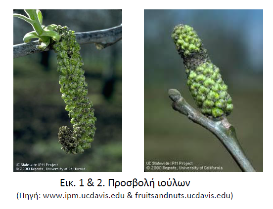 -Ίουλοι (αρσενικά άνθη). Μαύρισμα ενός τμήματος του άνθους. Η προστασία τους είναι πολύ σημαντική, γιατί το βακτήριο μπορεί να μεταφερθεί με τη γύρη στα θηλυκά άνθη.