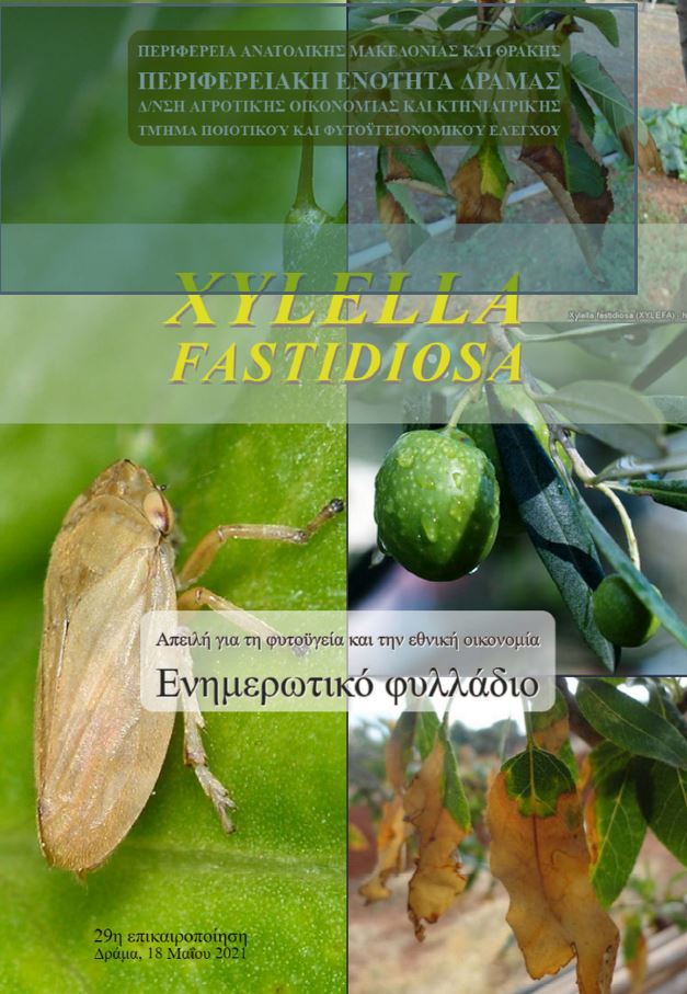 Η ασθένεια επιβεβαιώθηκε στην ελιά, αμυγδαλιά, πικροδάφνη, καρυδιά, κερασιά, βερικοκιά, άμπελο, λεβάντα, πελαργόνιο, δενδρολίβανο και πολλά άλλα φυτά, με συμπτώματα ξηράνσεων στα φύλλα και ταχύτατης αποπληξίας κατά τις θερμές περιόδους του έτους (Εικόνες 1 έως 5). Το εν λόγω παθογόνο εντάχθηκε από το 2014 στο ετήσιο πρόγραμμα επισκοπήσεων επιβλαβών οργανισμών, για τη διαπίστωση της παρουσίας του ή μη στη Χώρα μας και της τυχόν διασποράς του.