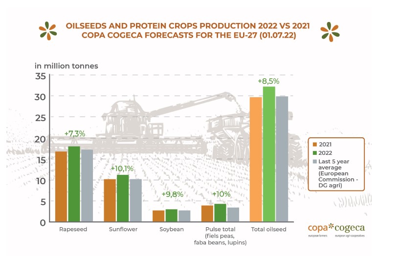 Για τις καλλιέργειες ελαιούχων σπόρων και πρωτεϊνών, η κατάσταση είναι πιο θετική με αποτελέσματα πάνω από το ετήσιο μέσο όρο της τελευταίας 5ετίας (>5%).