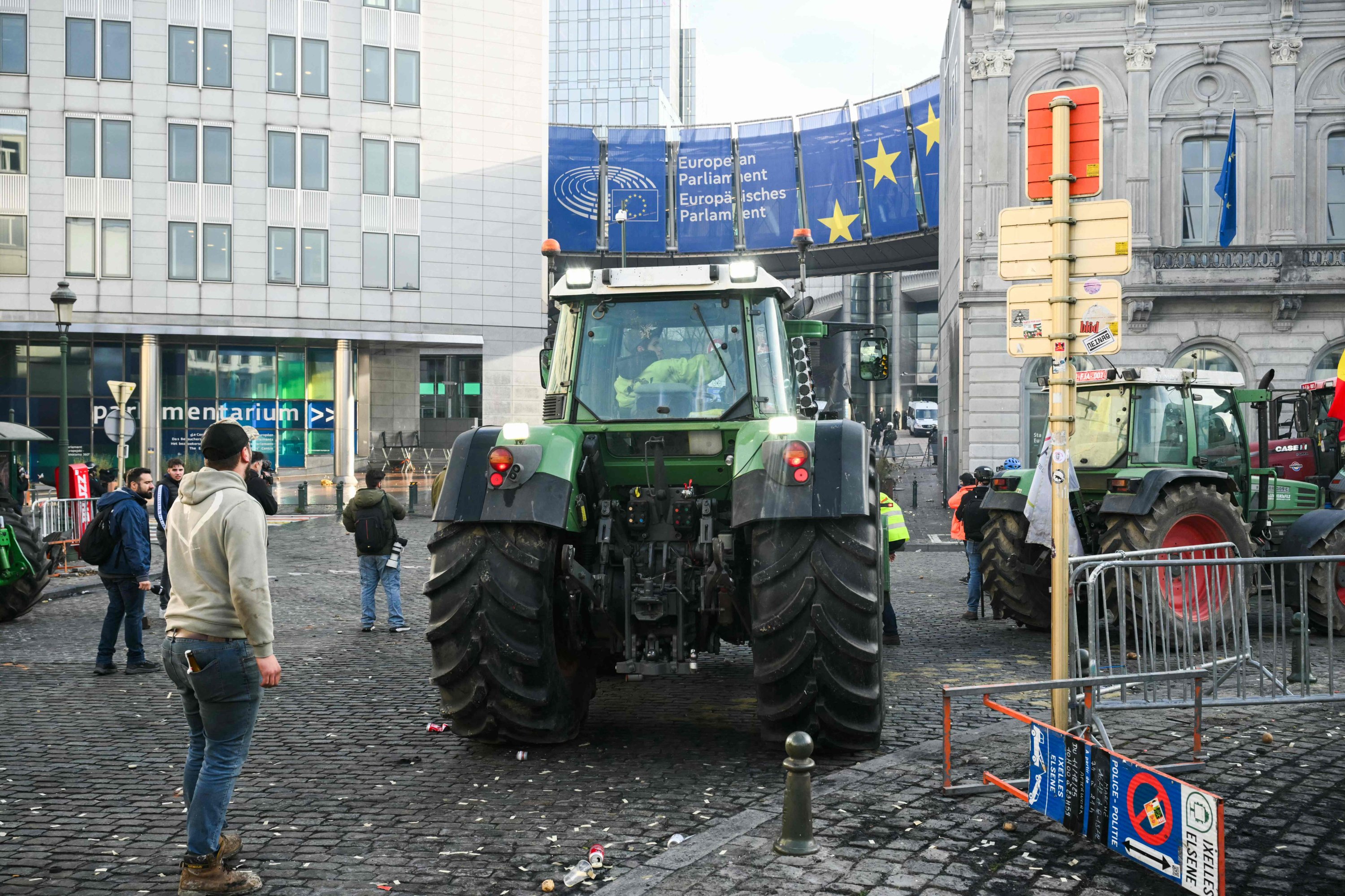 Αγρότες έριξαν το χριστουγεννιάτικο δέντρο μπροστά από το Ευρωπαϊκό Κοινοβούλιο και το αντικατέστησαν με μια πυρά από φλεγόμενα ελαστικά και συντρίμμια, όχι μακριά από το σημείο όπου οι ηγέτες της ΕΕ συζητούσαν βασικά ζητήματα για την Ένωση την Πέμπτη. Ενώ μερικά από τα τρακτέρ έφεραν χριστουγεννιάτικα φώτα και έπαιζαν χαρούμενα τραγούδια από βιντεοπαιχνίδια και ποπ μελωδίες από τις κόρνες τους, η αστυνομία αγωνίστηκε να περιορίσει τα πιο θορυβώδη ξεσπάσματα στην Πλας του Λουξεμβούργου. Η Ευρωπαϊκή Συνοικία ήταν γεμάτη καπνό καθώς οι αρχές κατέφυγαν σε δακρυγόνα για να διαλύσουν τους διαδηλωτές καθ' όλη τη διάρκεια της ημέρας.