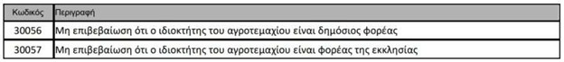 Παράδειγμα θα μπορούσαν να αποτελούν οι παρακάτω αιτιολογίες απόρριψης αγροτεμαχίου: