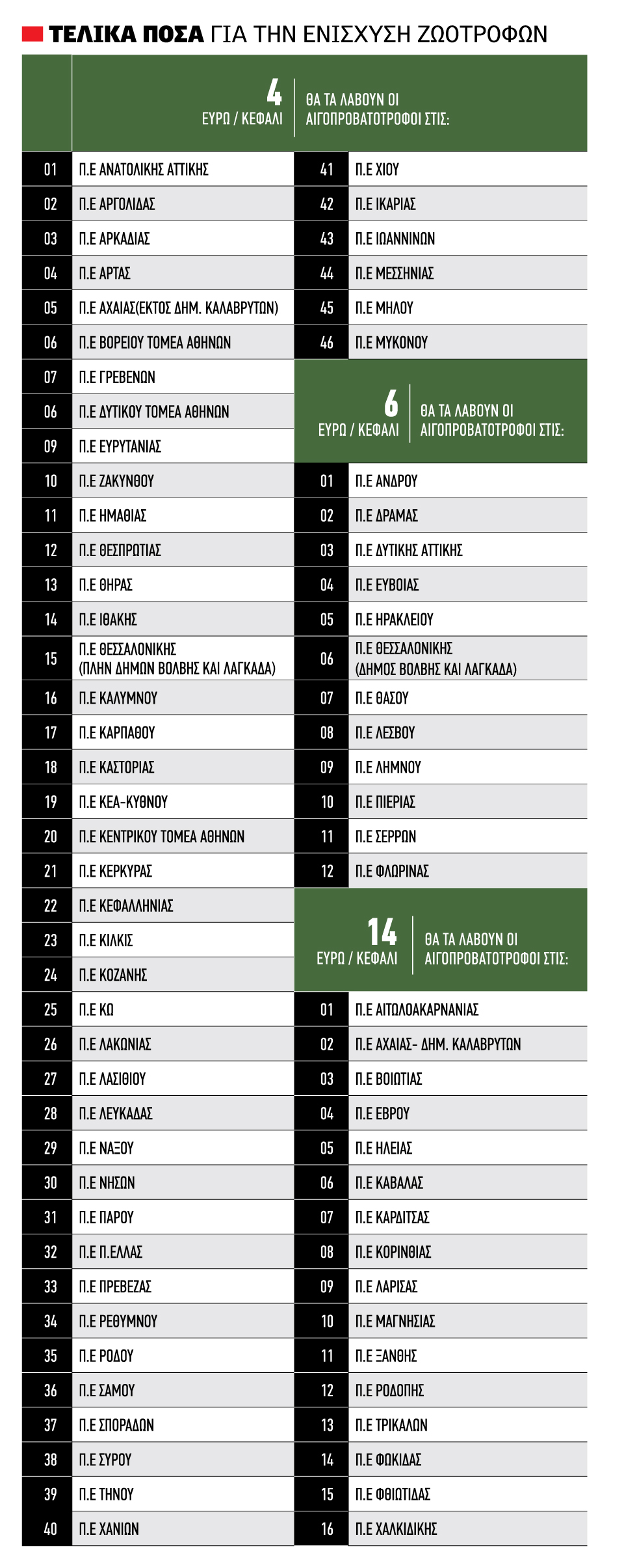 Οι πίνακες με τα ποσά ενίσχυσης ανά Περιφερειακή Ενότητα στο τέλος του άρθρου.