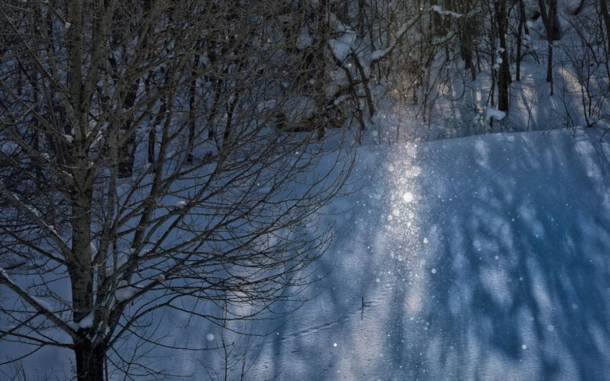 Η παγωμένη θερμοκρασία του αέρα, που είναι πιο παγωμένη κοντά στην επιφάνεια σε σχέση με τα υψόμετρα, παράγει λαμπερούς κρυστάλλους πάγου, γνωστούς και ως διαμαντόσκονη. Το σχήμα τους είναι σαν βελόνες και εμφανίζονται σαν ομίχλη, η οποία όμως λαμπιρίζει όταν τη χτυπά το φως του ήλιου. Σε αντίθεση με το χιόνι, η διαμαντόσκονη πέφτει από τον καθαρό ουρανό, χωρίς σύννεφα, και αιωρείται στον αέρα. Αποτελεί συχνό φαινόμενο στην Ανταρκτική και τον Αρκτικό Κύκλο, ενώ περιστασιακά μπορεί να εμφανιστεί και σε άλλα μέρη. Το λαμπιρίζον αυτό χιόνι μπορεί να πέφτει για ημέρες, αλλά ποτέ δεν παραμένει στο έδαφος για πολύ.