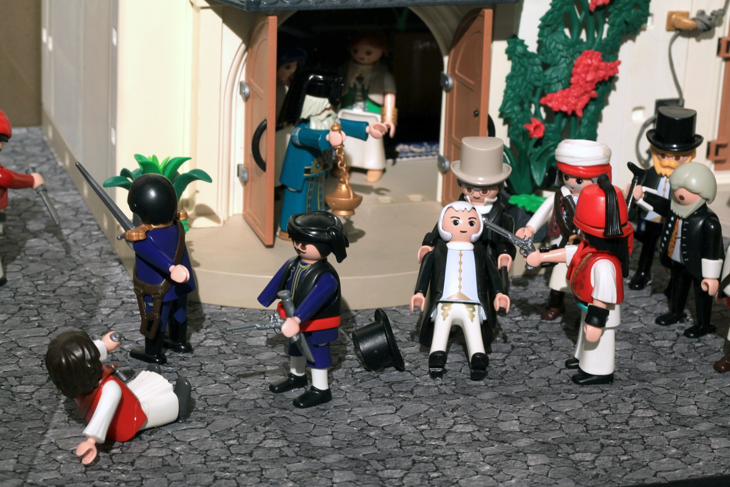 Ο Όρκος των Φιλικών, η Άλωση της Τριπολιτσάς, η Έξοδος του Μεσολογγίου, η Φυγή των Παργινών, είναι κάποια από τα διοράματα που δεσπόζουν στην έκθεση. Πρωταγωνιστές της Επανάστασης, Έλληνες, Φιλέλληνες και Οθωμανοί, άντρες και γυναίκες που έπαιξαν σημαντικό ρόλο στην εξέλιξη των γεγονότων, παρουσιάζονται σε φιγούρες PLAYMOBIL, συνοδευόμενοι από σύντομο βιογραφικό τους. Έτσι οπτικοποιούνται, με κατανοητό και ευφάνταστο τρόπο, όσα θέλει να αφηγηθεί η έκθεση και η Ιστορία γίνεται ένα απολαυστικό ταξίδι όχι μόνο για μικρούς αλλά και για μεγάλους.