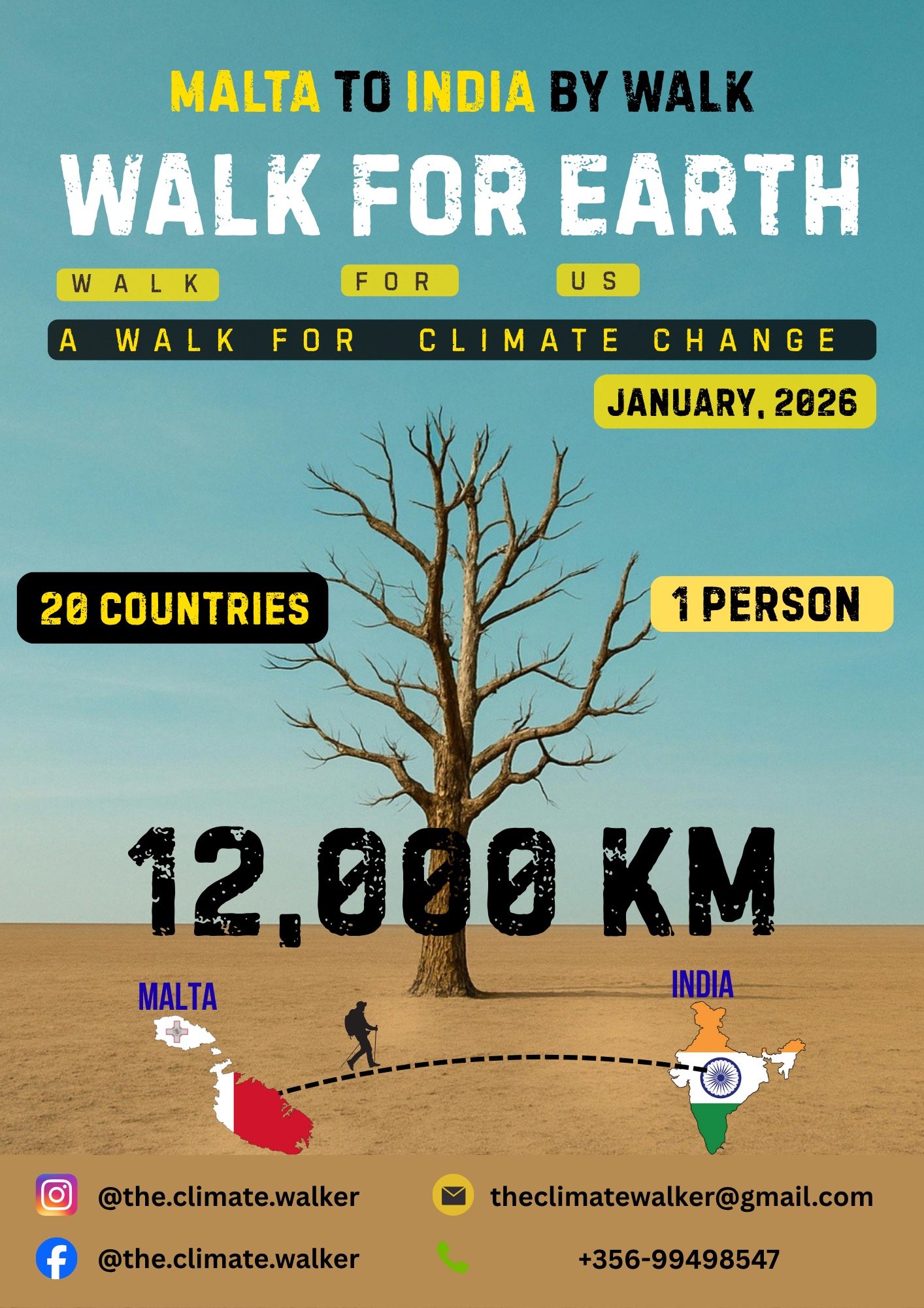 Στους σταθμούς του μεγάλου ταξιδιού του Jaydip είναι και η χώρα μας, όπου χωρίς αυτοκίνητο ή κάποια λογιστική υποστήριξη ο νεαρός Ινδός θα διανύσει 191 χιλιόμετρα με τα πόδια με σκοπό να αυξήσει την ευαισθητοποίηση για την κλιματική αλλαγή, την προώθηση του βιώσιμου τρόπου ζωής και την προστασία του περιβάλλοντος μέσω άμεσων συναντήσεων με ανθρώπους και δραστηριοτήτων στα μέσα ενημέρωσης.