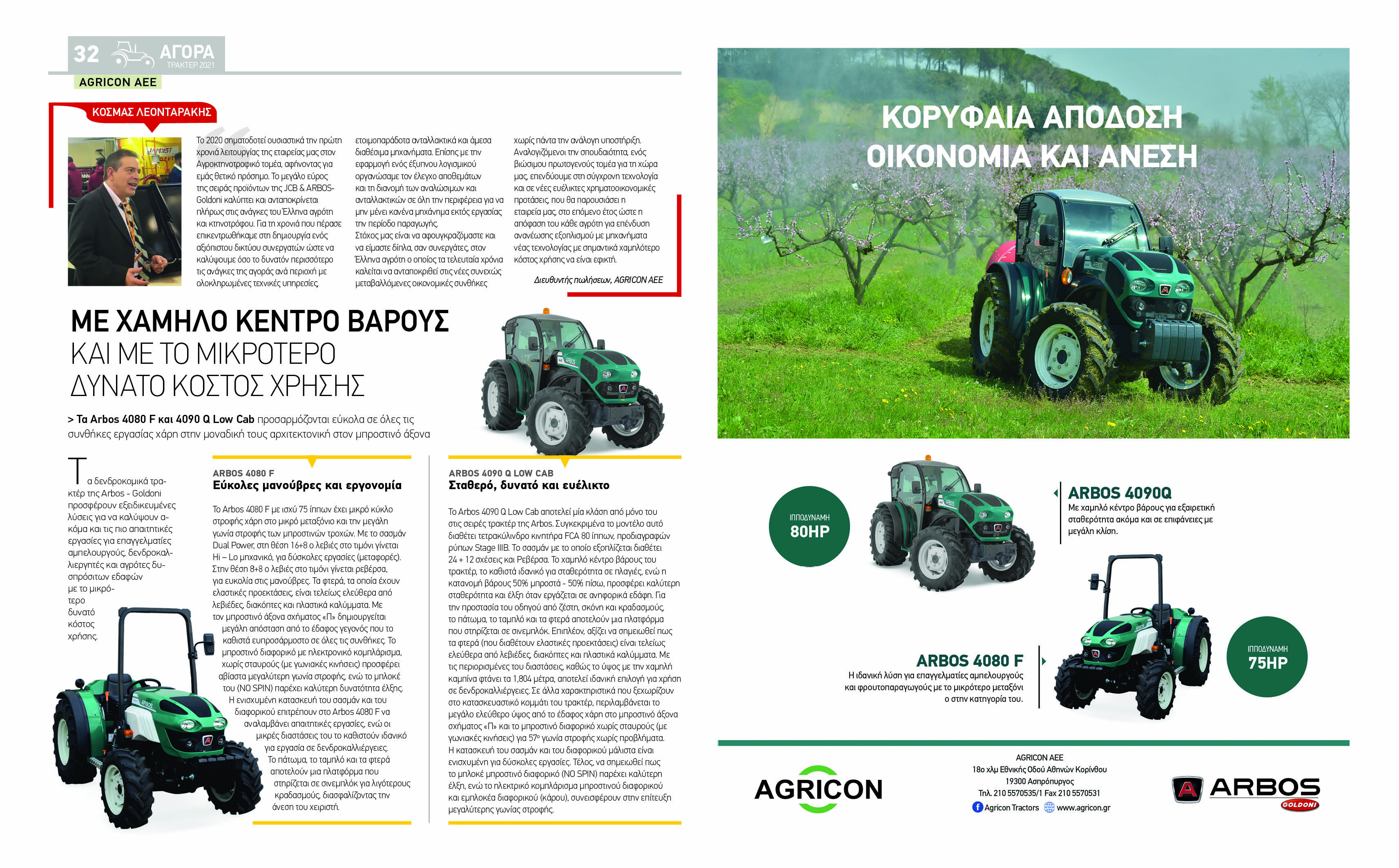Είναι κοινώς αποδεκτό ότι το 2020 ήταν µία πολύ δύσκολη χρονιά για ολόκληρο τον πλανήτη και ιδιαίτερα για την χώρα µας. Παρά το γεγονός ότι η πανδηµία Covid προκάλεσε σοβαρές επιπτώσεις στην οικονοµία και τον πρωτογενή τοµέα, η αγορά κινήθηκε ανοδικά σηµειώνοντας σηµαντική αύξηση στις πωλήσεις των καινούργιων τρακτέρ, λόγω των πολυαναµενόµενων σχεδίων βελτίωσης.