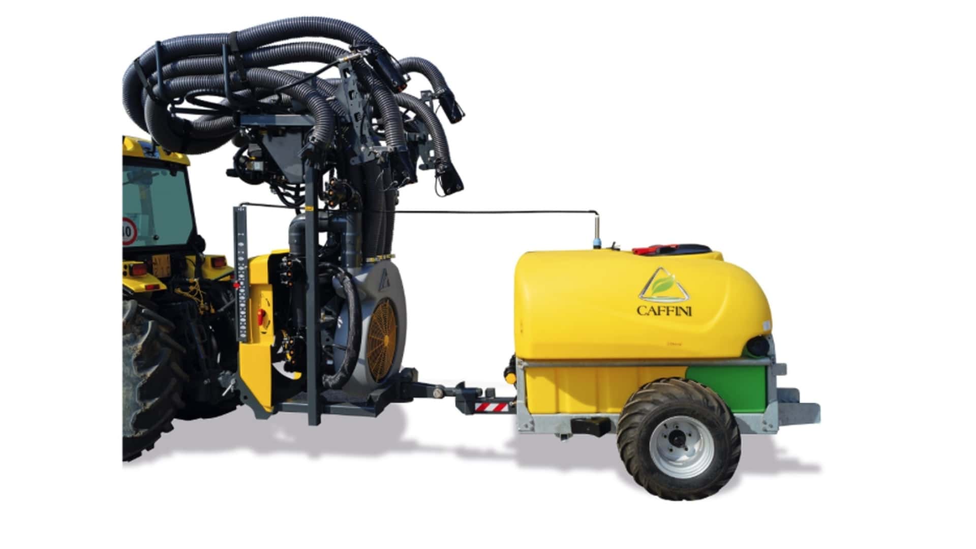 Η κυψέλη με τους βραχίονες τουρμπίνας και διαχύτη μεταφέρεται στο τρίτο σημείο του τρακτέρ, ενώ η δεξαμενή ρυμουλκείται στο πίσω μέρος. Αυτό επιτρέπει μεγάλη ευελιξία του μηχανήματος, ακόμη και σε αμπελώνες όπου το κεφαλάρι είναι στενό ή σε πλαγιές όπου η κατανομή του βάρους είναι ζωτικής σημασίας.