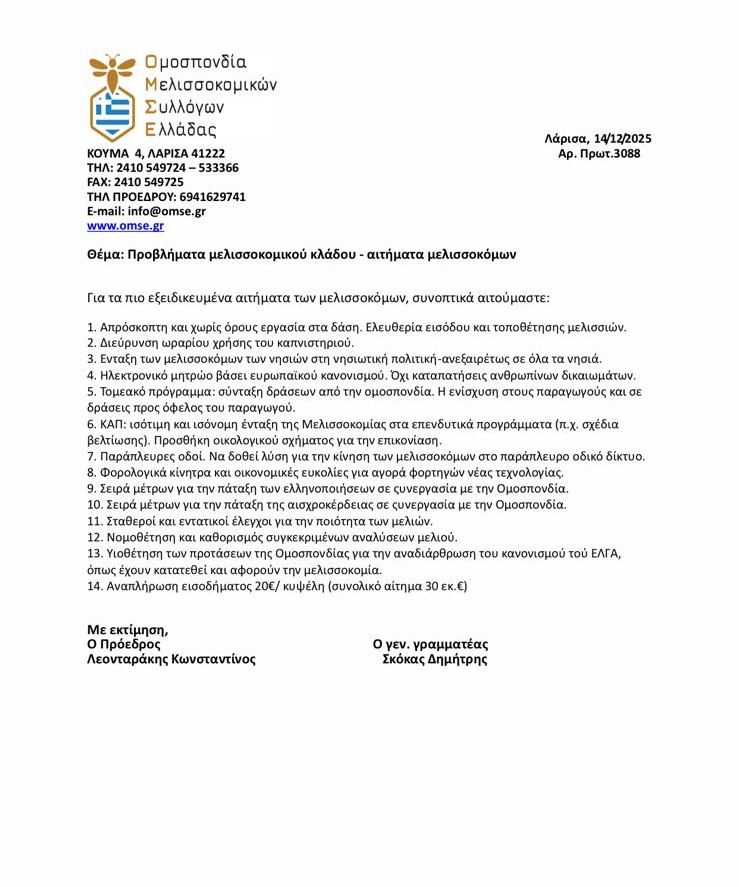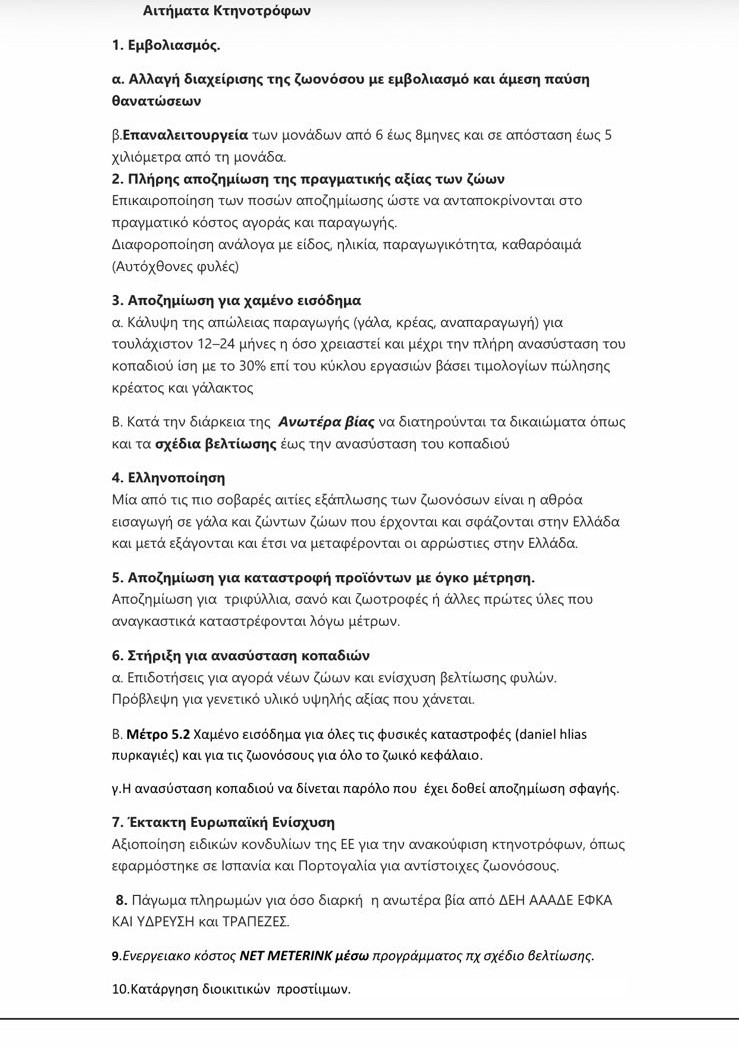 Αναλυτικά το πλαίσιο αιτημάτων των αγροτών έχει ως ακολούθως