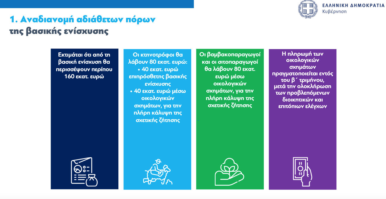 - Αναδιανομή αδιάθετων πόρων της βασικής ενίσχυσης