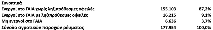 - Πρώτον, υποτίθεται πως από 1 Δεκεμβρίου 2025 μετέπεσε το σύνολο των αγροτικών παροχών στη χώρα στο σταθερό τιμολόγιο «ΓΑΙΑ» και όχι στο πράσινο της ΔΕΗ. Αν είναι έτσι, σημαίνει πως το σύνολο των ενεργών αγροτικών παροχών στη χώρα ανέρχεται σε μόλις 178 χιλιάδες;