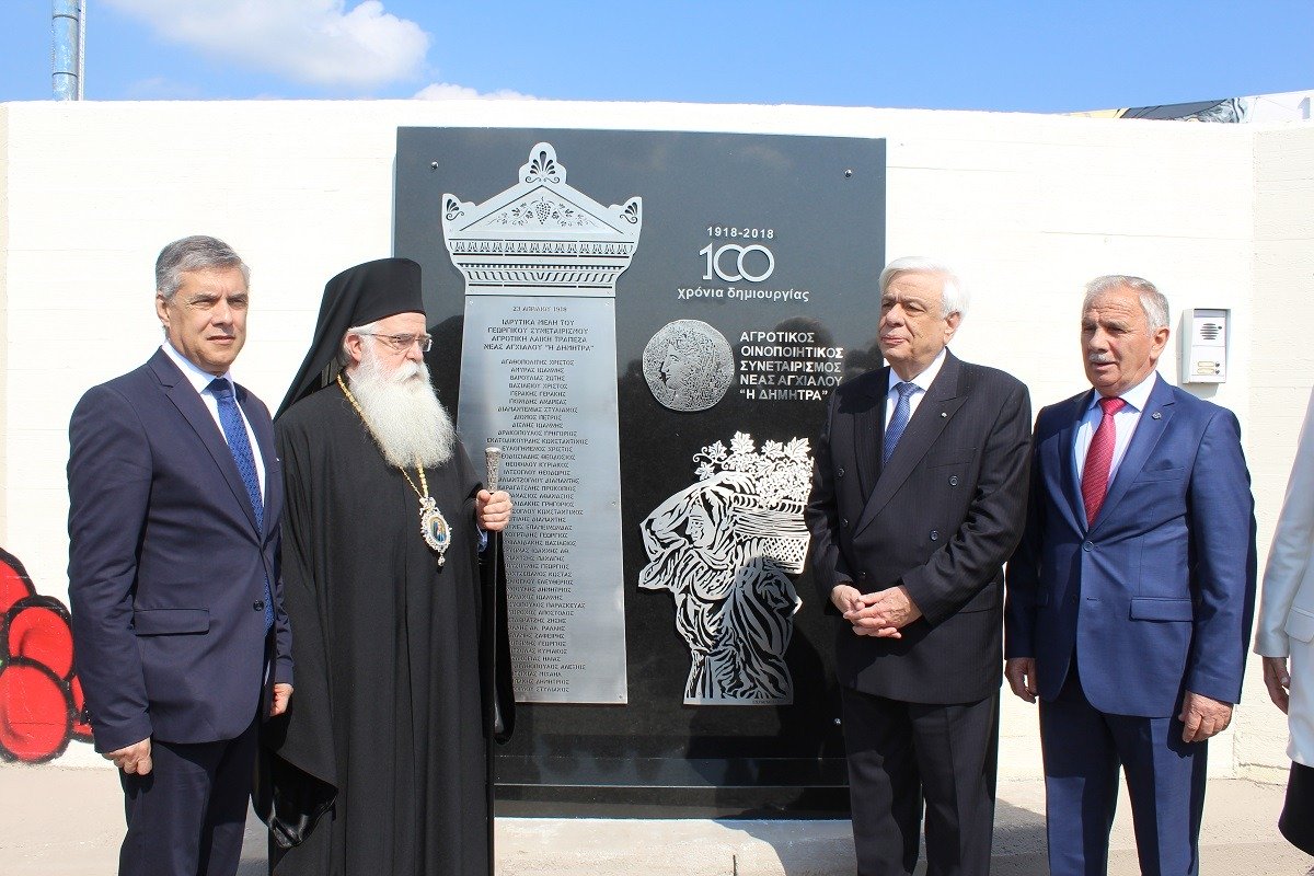 Την πεποίθηση ότι με την ενότητα και τη συλλογική προσπάθεια μπορούμε να καταφέρουμε πολλά, και ότι οι εσωτερικοί διχασμοί οδηγούν τη χώρα σε τραγωδίες, μοιράστηκε από τη Ν. Αγχίαλο ο Πρόεδρος της Δημοκρατίας Προκόπης Παυλόπουλος, όπου βρέθηκε στις 7 Απριλίου, στο πλαίσιο εκδηλώσεων για τη συμπλήρωση 100 χρόνων από την ίδρυση του αγροτικού οινοποιητικού συνεταιρισμού Ν. Αγχιάλου «Η Δήμητρα». Ο κ. Παυλόπουλος έφθασε γύρω στις 10:00 το πρωί στον Ι. Ν. Αγ. Γεωργίου στη Ν. Αγχίαλο όπου παρακολούθησε τη Θεία Λειτουργία και λίγο πριν τις 11:00 το πρωί στον χώρο του συνεταιρισμού, όπου τελέστηκε αγιασμός και τα αποκαλυπτήρια του μνημείου των 43 ιδρυτών του.