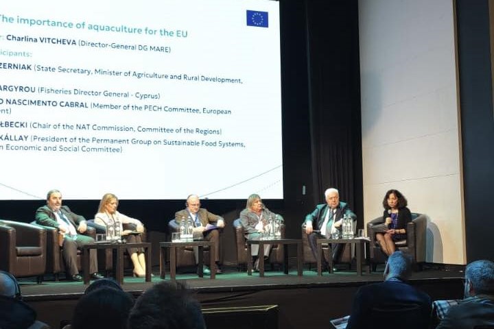 Στην παρέμβασή της, η Διευθύντρια του Τμήματος Αλιείας και Θαλασσίων Ερευνων, κα Μαρίνα Αργυρού, εκπροσωπόντας την Υπουργό Γεωργίας, Αγροτικής Ανάπτυξης και Περιβάλλοντος της Κύπρου ανέδειξε την διαχρονική ανάπτυξη του τομέα στην Κύπρο, ο οποίος αποτελεί πλέον το 85% της συνολικής παραγωγής αλιευτικών προϊόντων και συγκαταλέγεται στα κορυφαία εξαγωγικά προϊόντα του πρωτογενούς τομέα στην Κύπρο. Η κα Αργυρού τόνισε ότι η επιτυχία της κυπριακής υδατοκαλλιέργειας βασίστηκε στον έγκαιρο σχεδιασμό και στρατηγική αναγνωρίζοντας τη σημασία του τομέα και τη δημιουργία του κατάλληλου νομοθετικού πλαισίου. Επισήμανε τη σημασία της περιβαλλοντικής παρακολούθησής, των ελέγχων, της διαφάνειας και της συνεργασίας μεταξύ των δημόσιων φορέων, των επιστημόνων και του ιδιωτικού τομέα. Επίσης, αναφέρθηκε στην περαιτέρω προοπτική για επενδύσεις στον τομέα στην Κύπρο ιδιαίτερα σε θέματα καινοτομίας και στην ενίσχυση της ανταγωνιστικότητας, εξασφαλίζοντας ένα μέλλον αειφόρου ανάπτυξης.